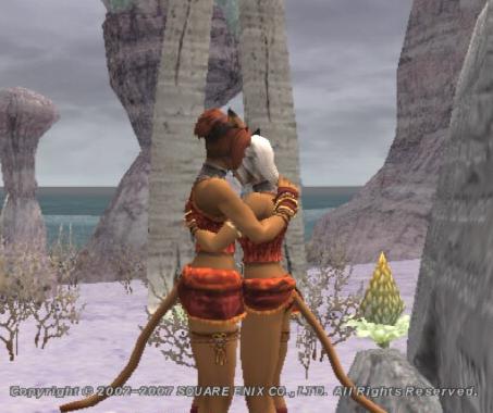 いいじゃん抱きつくくらい、減るもんじゃなし(´・ω・`) ミスラ同士ならセクハラにもならないお!たぶん(*'-')b