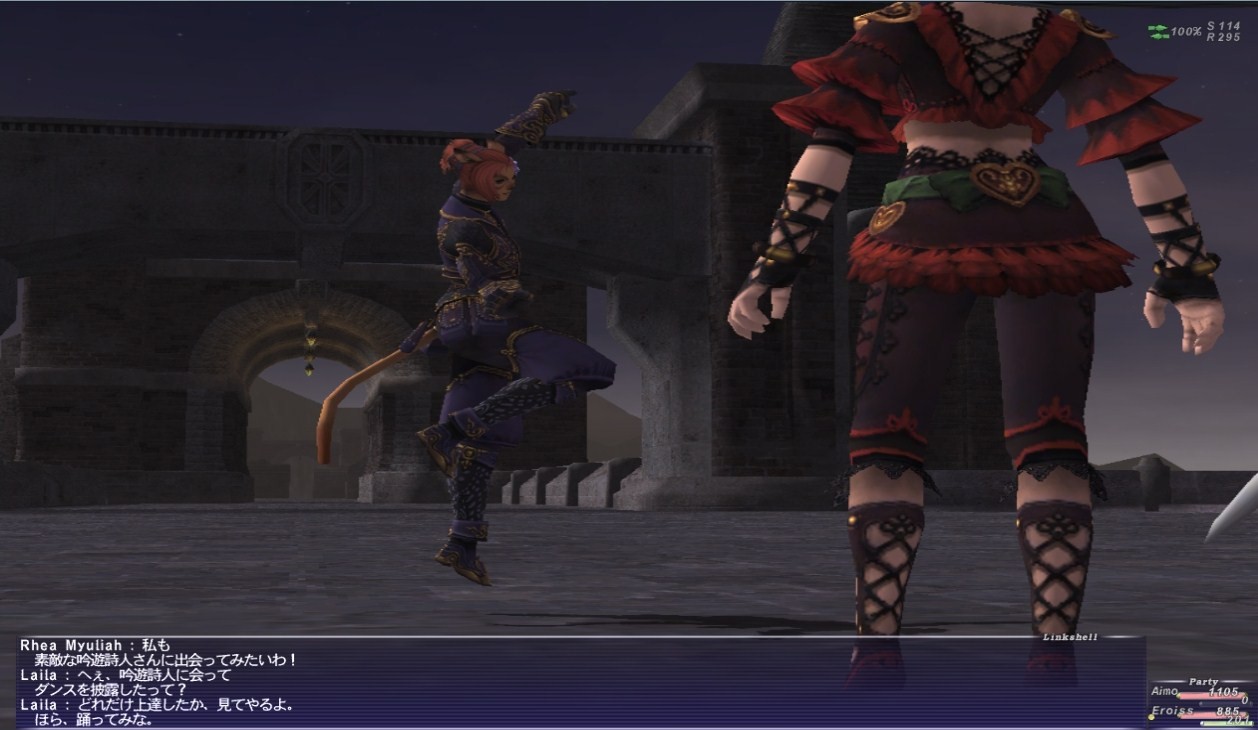 ダンスの練習はライラさんの近くにいる猫踊り子さんに話しかけるとしてもらえるぽぃ!1回目は何のこっちゃ分からなかったから失敗したけど、2回目の練習では見事成功っ!