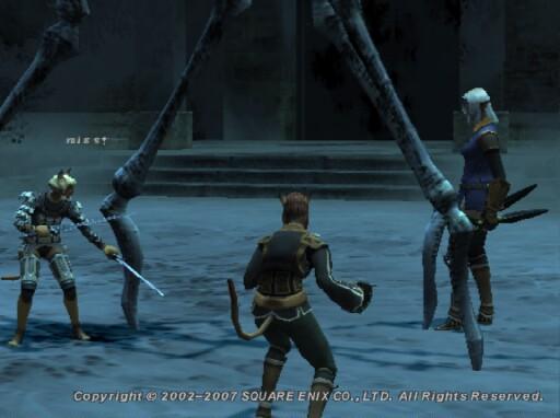 敵は足長の奴です。範囲攻撃、範囲毒、一撃で瀕死になるWSなどなどいやらしぃ攻撃ばかりするモンスターです(/ω\) 連続で食らうと一瞬でアボン;;なんてことも。。。∑('-'ノ)ノ